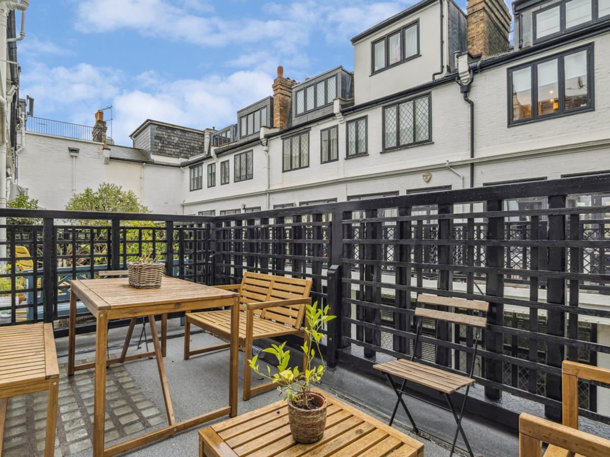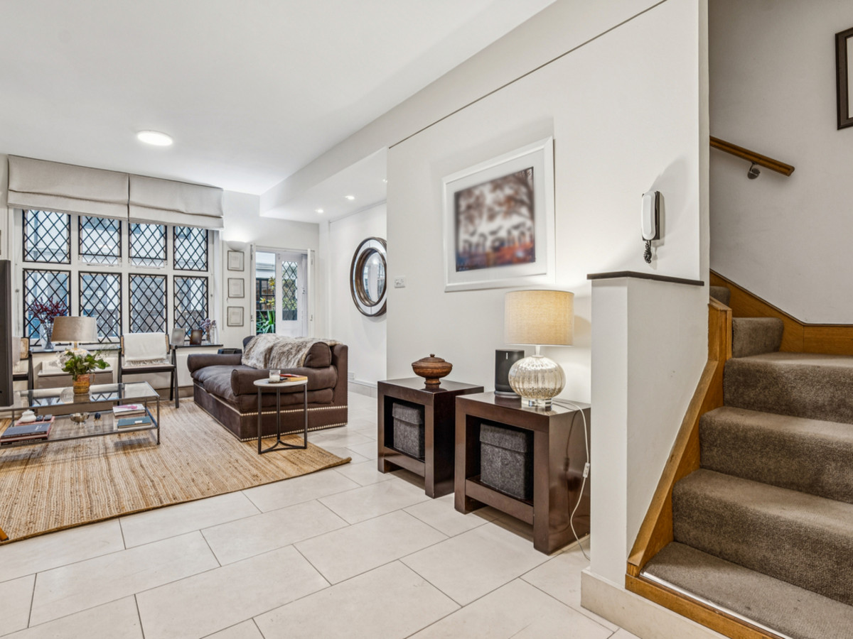 The property offers versatile space. On the ground floor, the spacious dining room joins onto the kitchen, which leads out to a communal courtyard. The first floor offers a study/bedroom 4 and a bright drawing room which leads out to a large balcony. The upper two floors, there are three double bedrooms with two bathrooms.