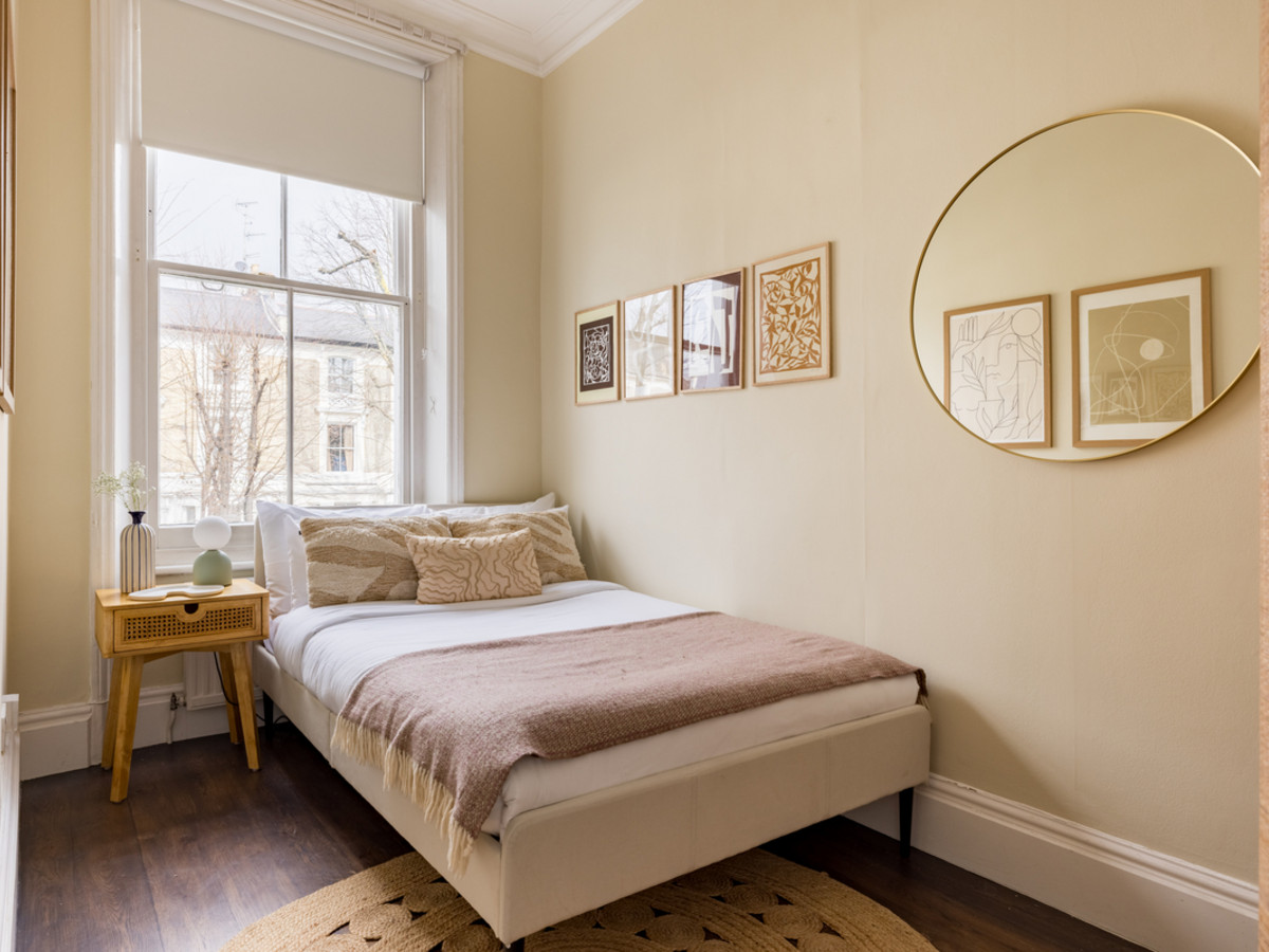With high ceilings, tasteful furnishings and a private balcony, the home is ideal for guests looking to enjoy a well-connected West London base with style and charm.