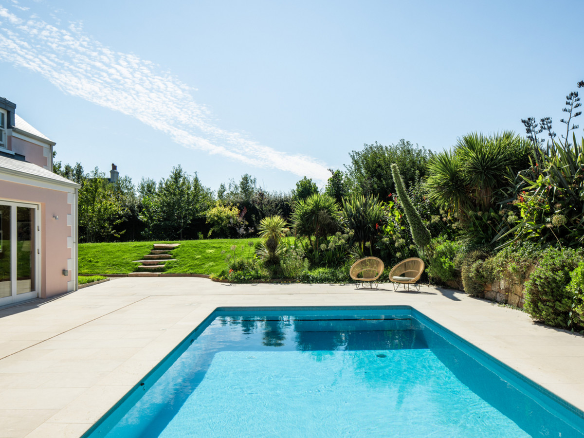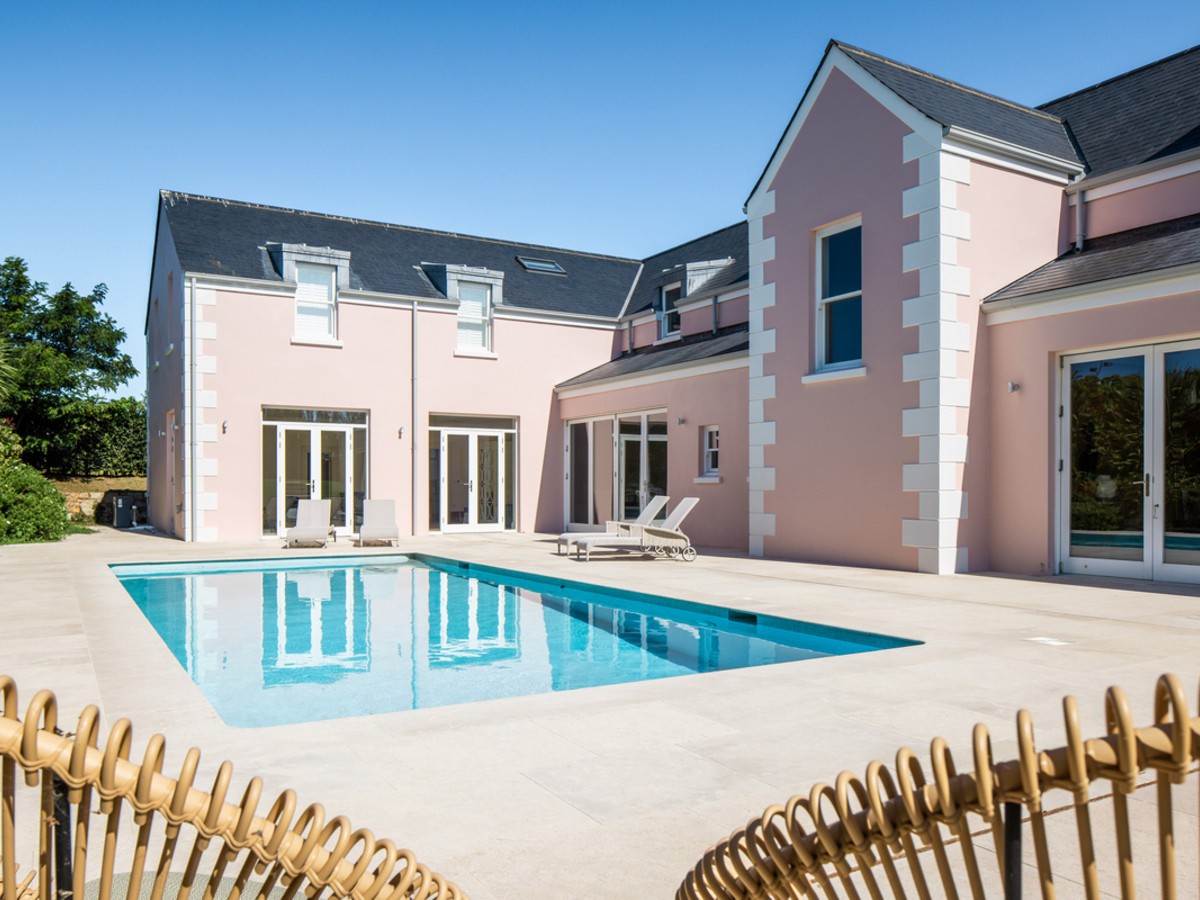 Located in the highly coveted parish of St. Brelade, the main house boasts six bedrooms and six bathrooms including a primary suite offering distant sea views over St. Aubin’s Bay. Additionally, a traditional granite four-bedroom, two-bathroom Jersey Farmhouse provides the perfect retreat for visiting guests.