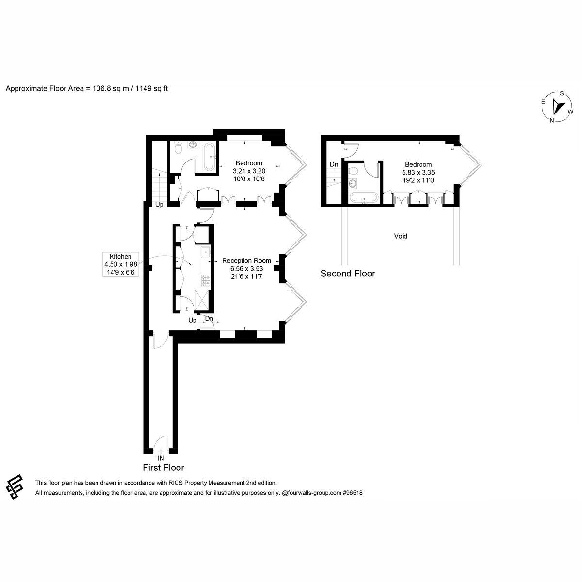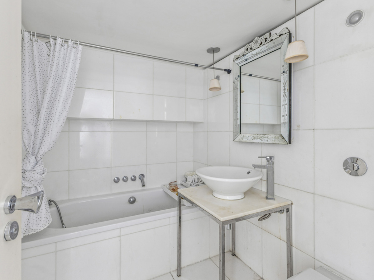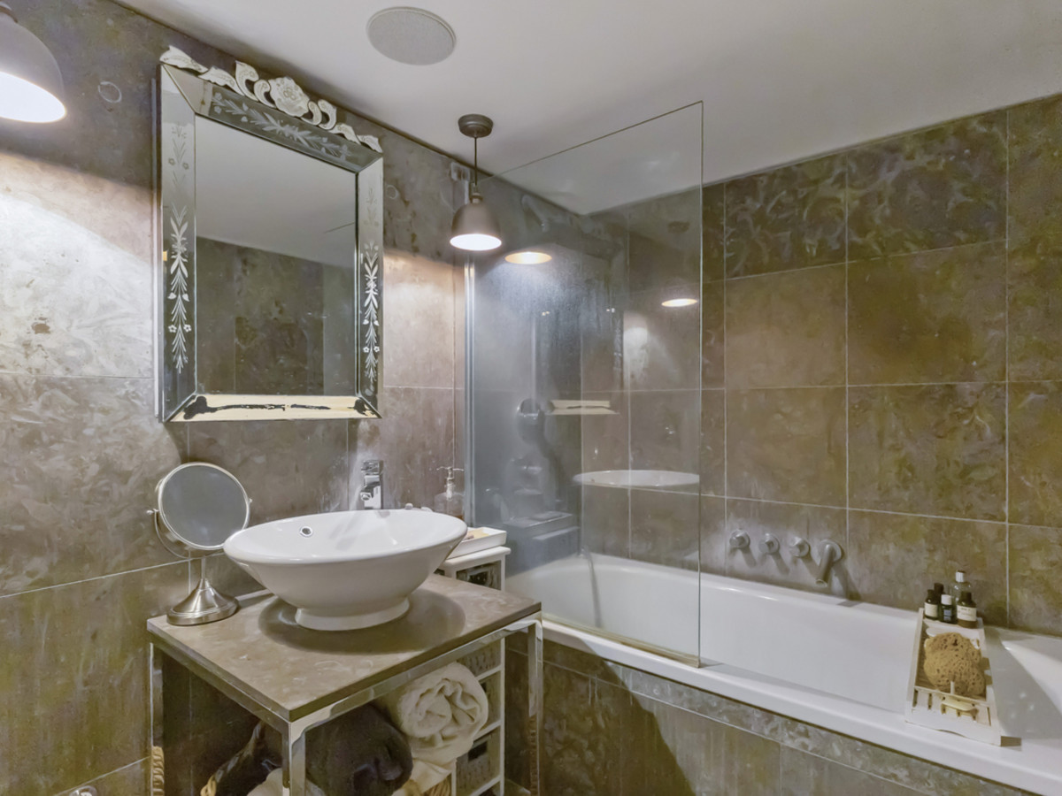 This split-level apartment boasts high ceilings and an abundance of natural light throughout. The spacious layout includes two generous double bedrooms, two modern bathrooms, and an open-plan living area that makes full use of the building’s dramatic architectural features.