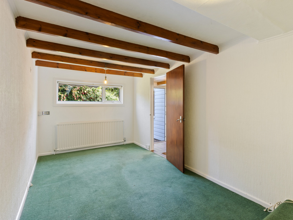From the hallway, you can also access the rear of the house, passing through a practical utility room with storage cupboards, washing machine, and tumble dryer, into a rear lobby. Beyond, you’ll find a versatile additional reception room – perfect as a study, snug, or fourth bedroom – with direct access to the garden. From here, an internal, shelved walkway connects to the large integral garage with electric up-and-over door, plus an additional rear room that could serve as a workshop, home gym, or creative studio.