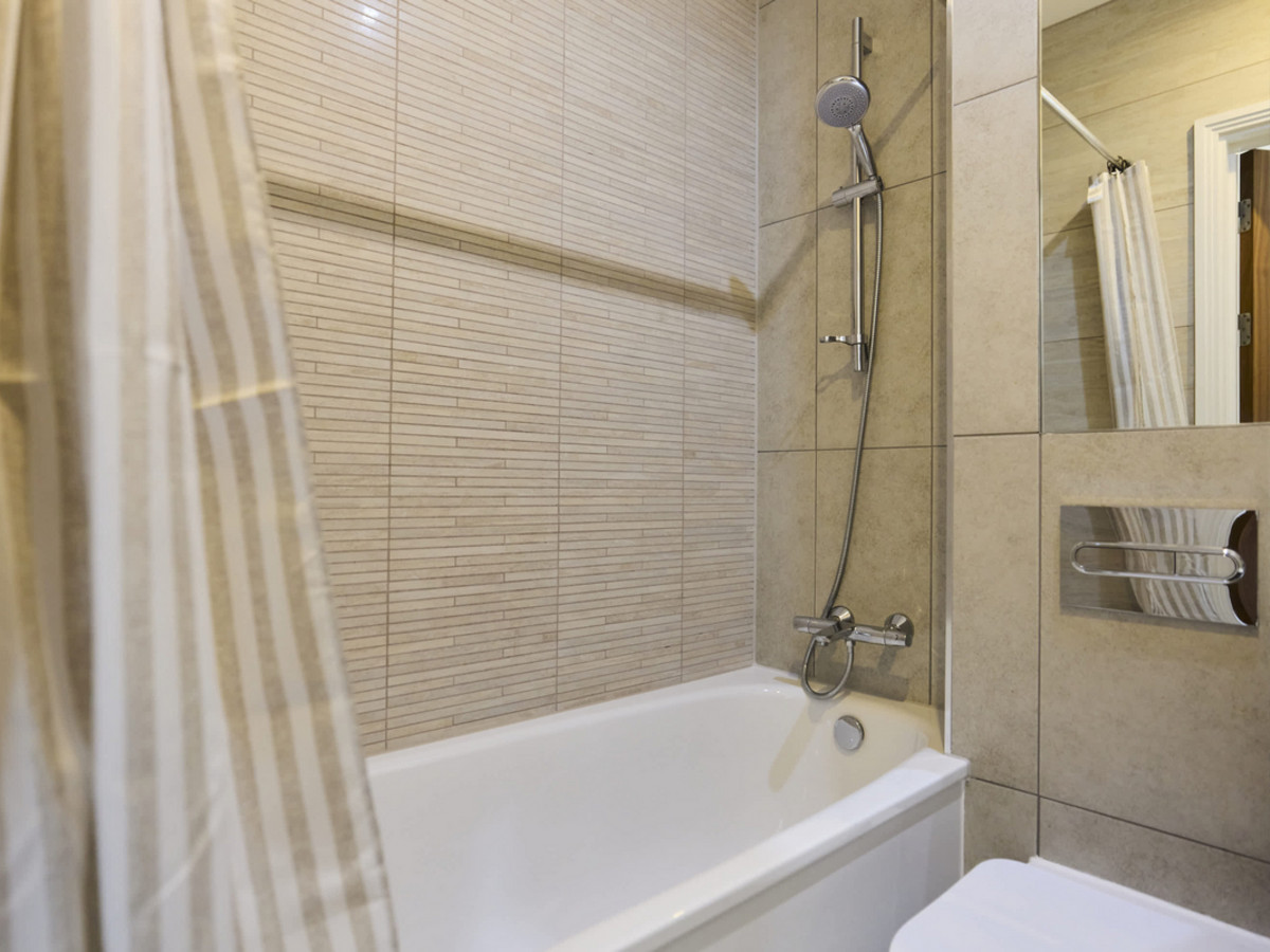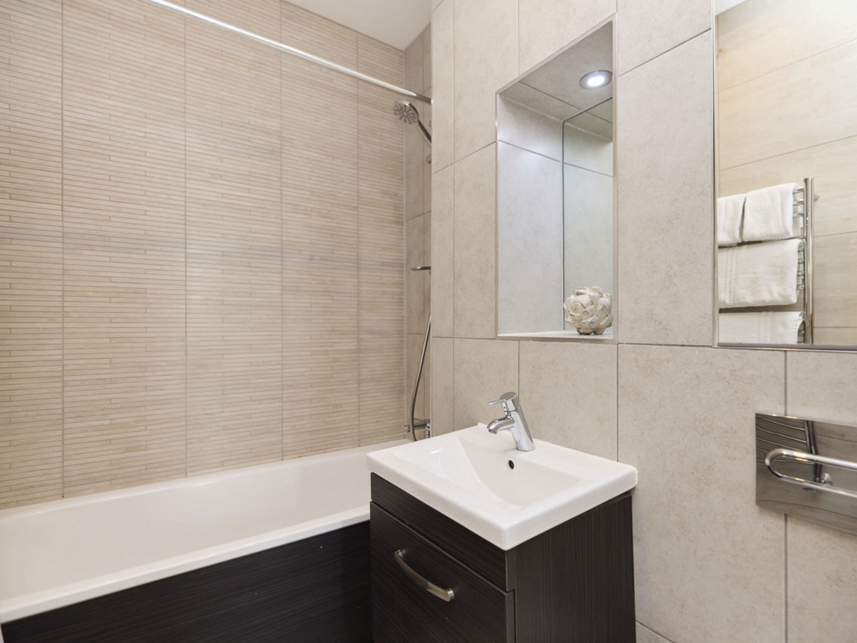 • En-suite to Bedroom 1: Shower-over-bath, toilet, and basin