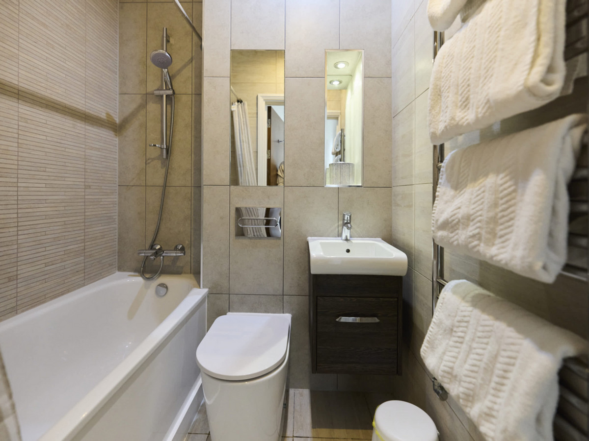 • Main bathroom: Shower-over-bath, toilet, and basin