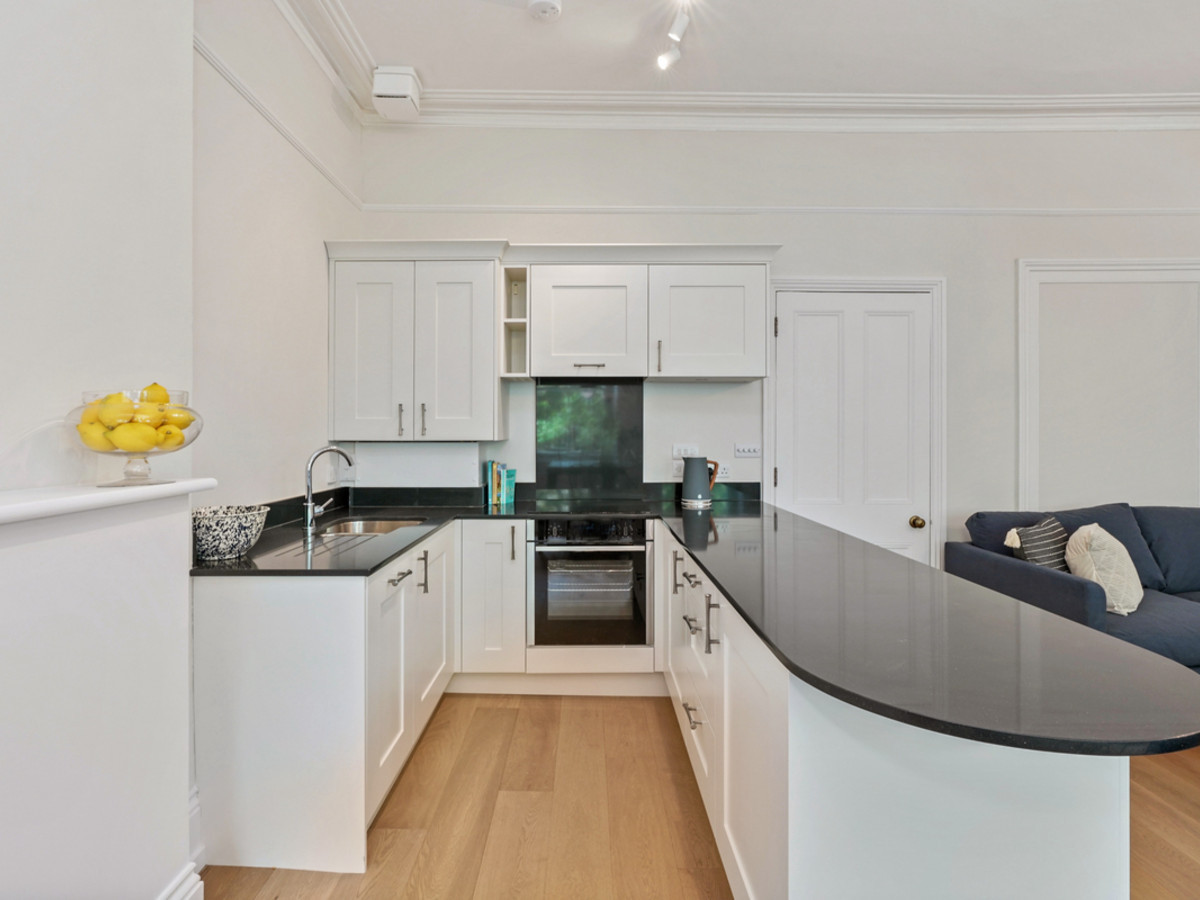 The property comprises a large open plan kitchen / living room overlooking the garden square, double bedroom with plenty of built in storage and an ensuite bathroom . The property has been finished to a very high standard and is fully furnished.