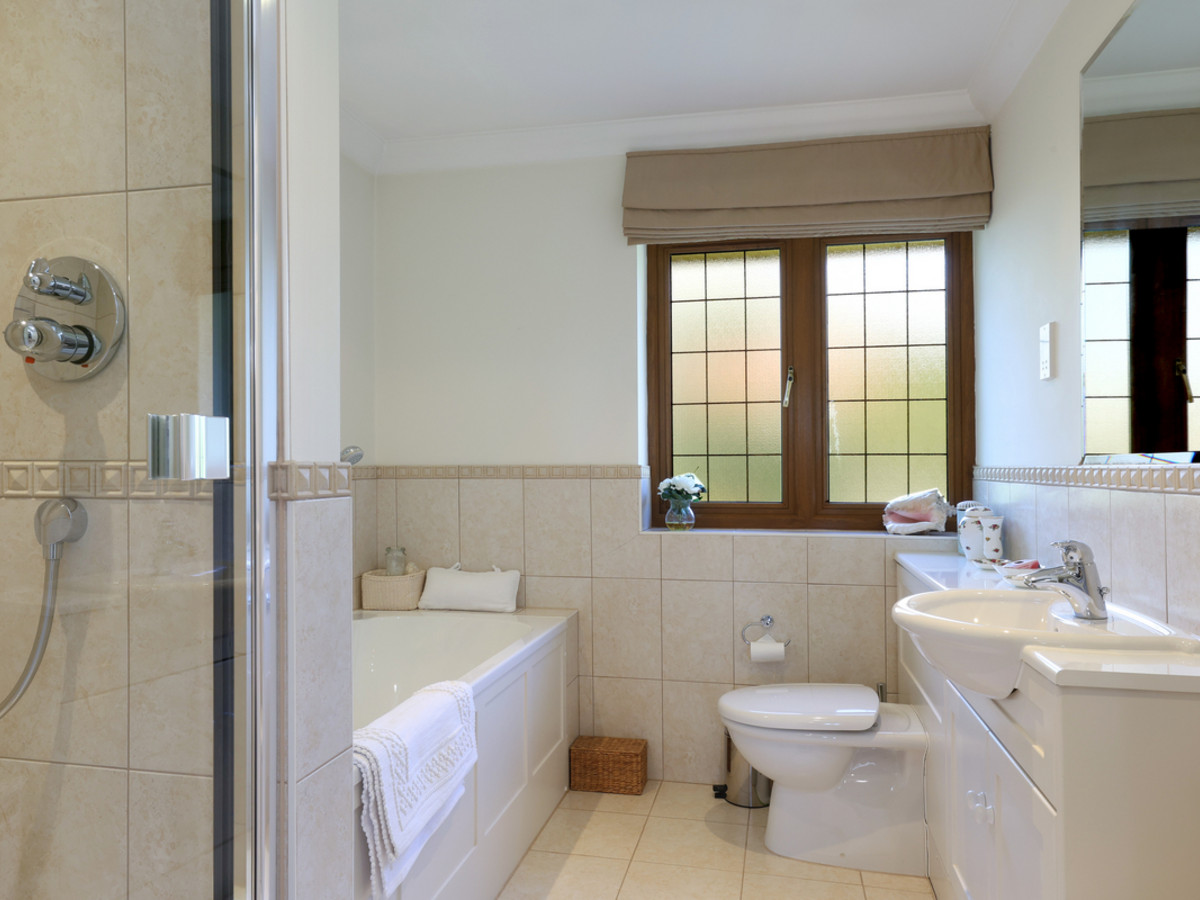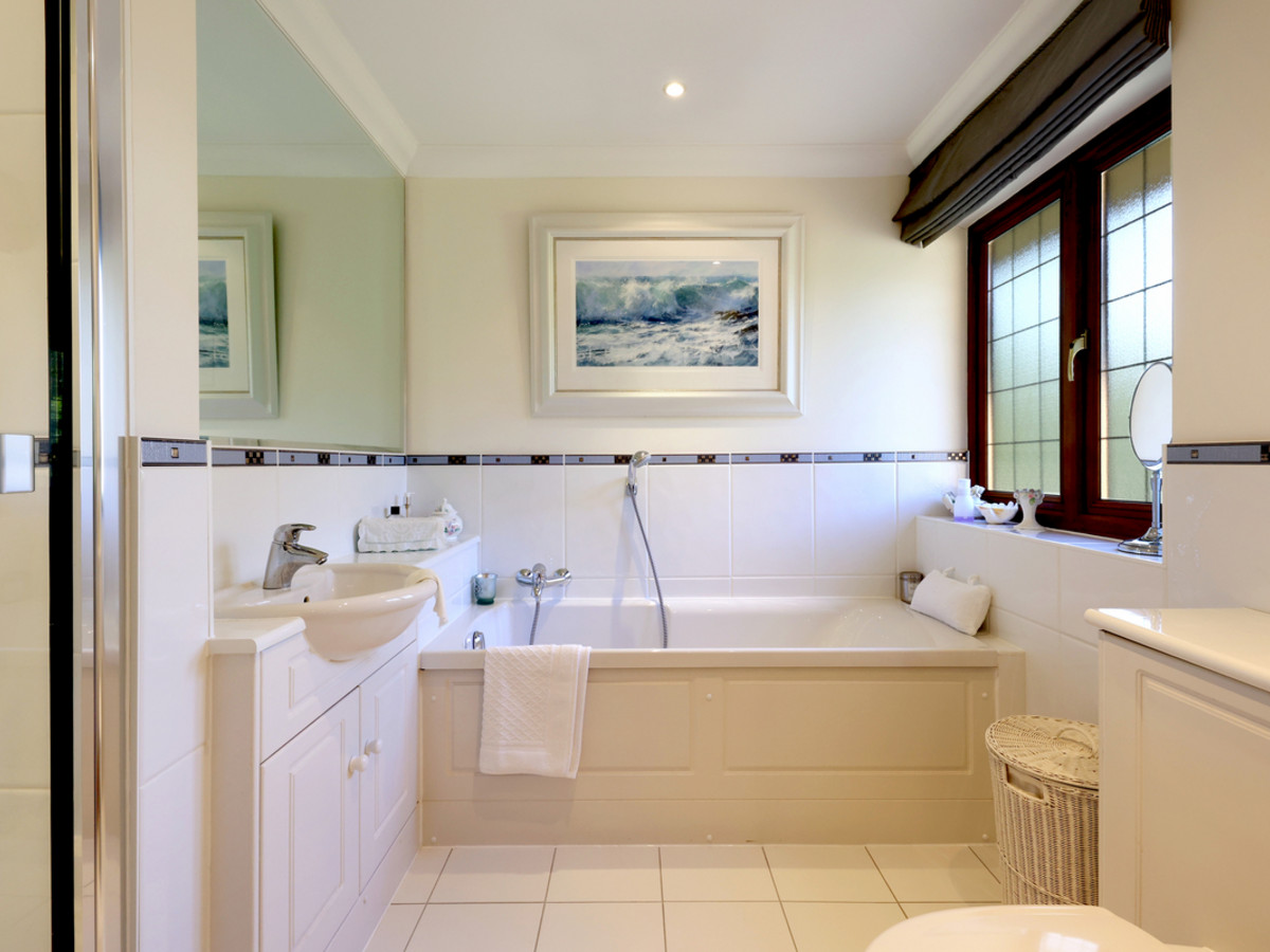 The luxurious principal bedroom offers a spacious bedroom, a large dressing room, and a well-appointed en-suite with dual sinks, a bathtub, and a separate shower. Three additional double bedrooms—two with en-suite bathrooms—provide excellent family accommodation, all finished to an exceptional standard.