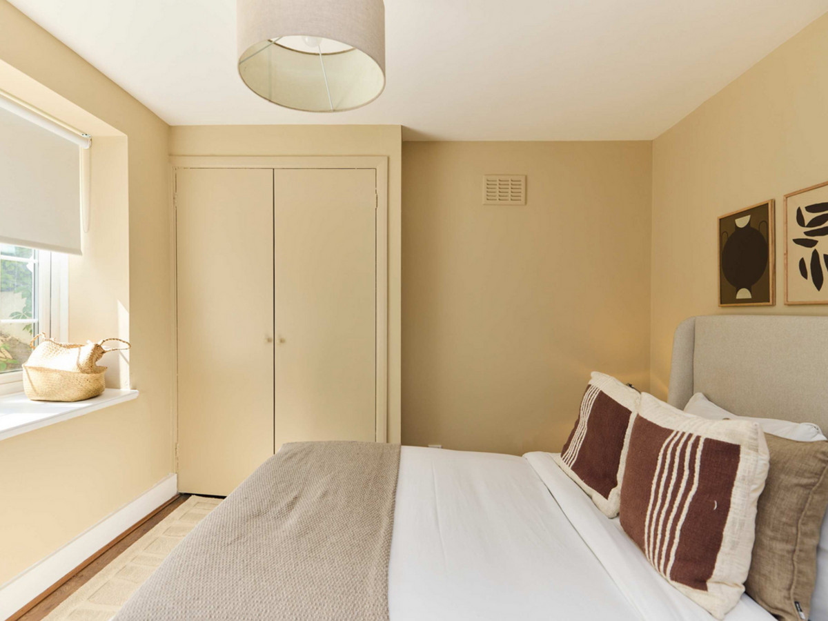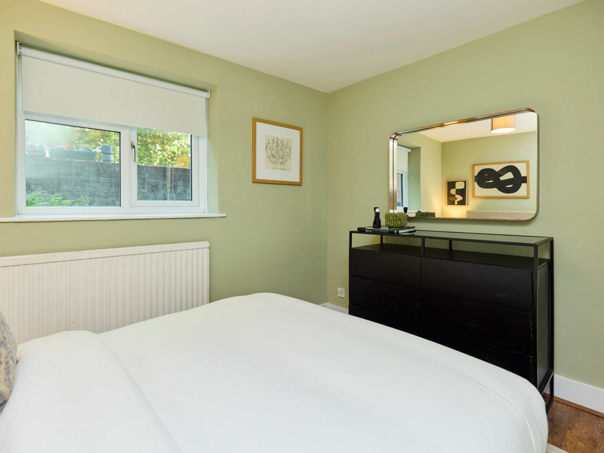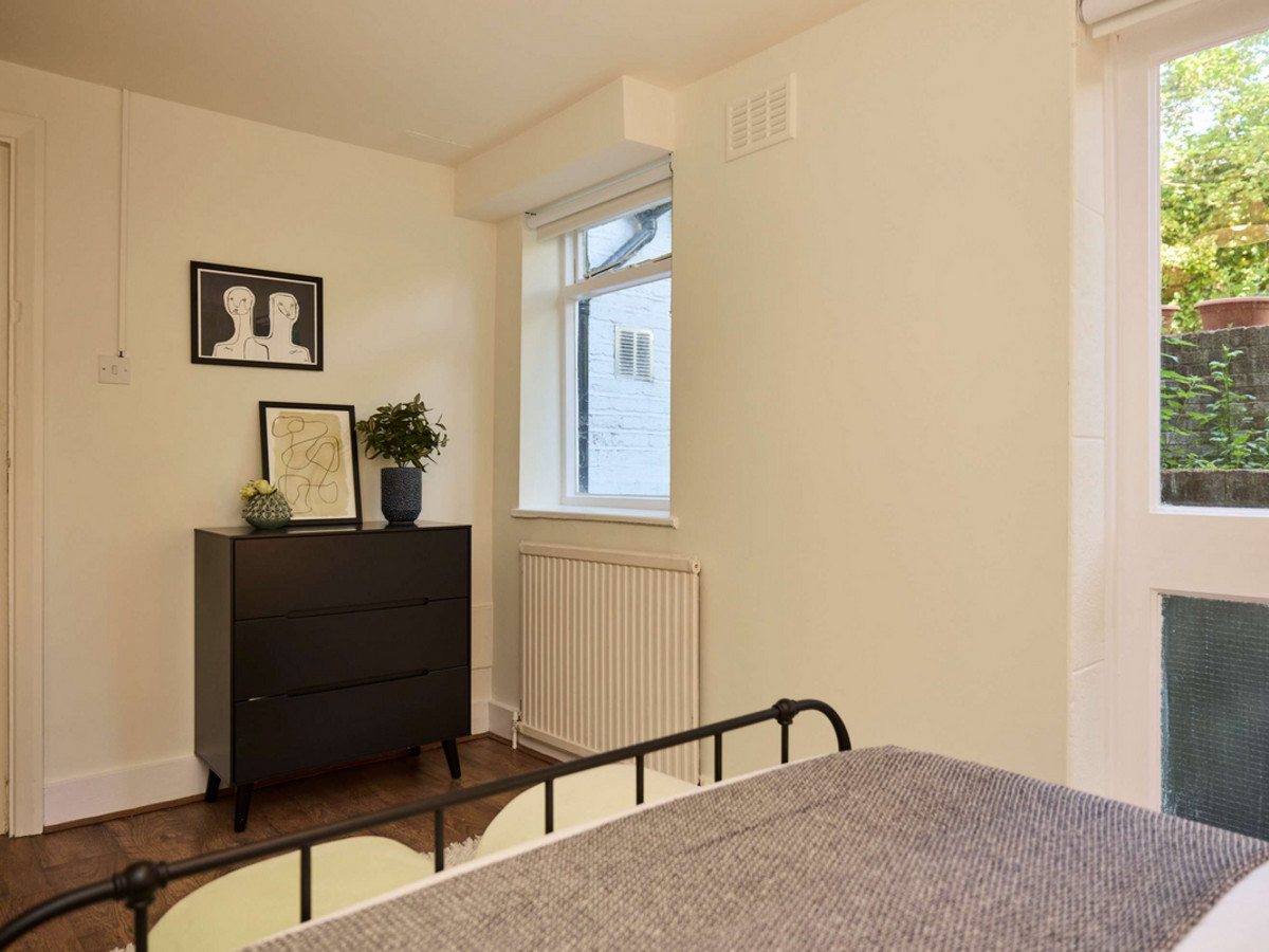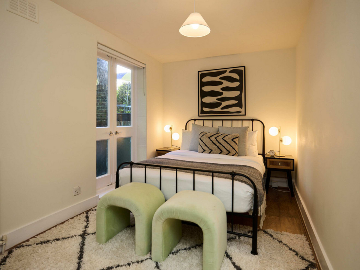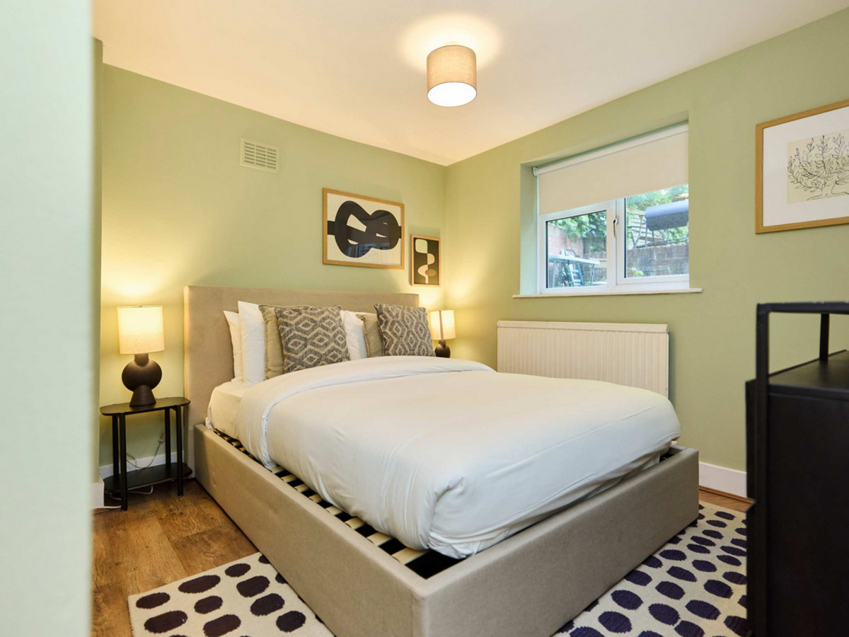 • Bedroom 2: A double room with window views to the garden and minimal furnishings.