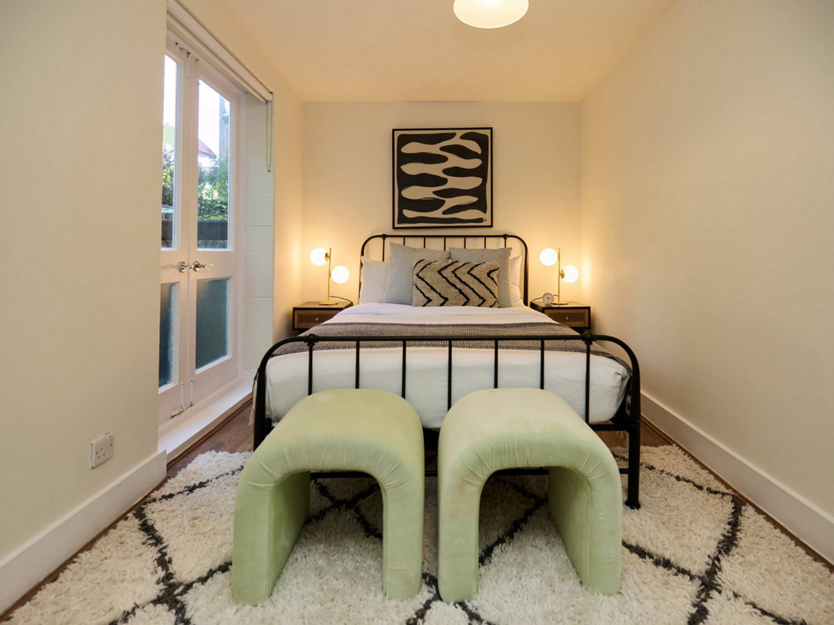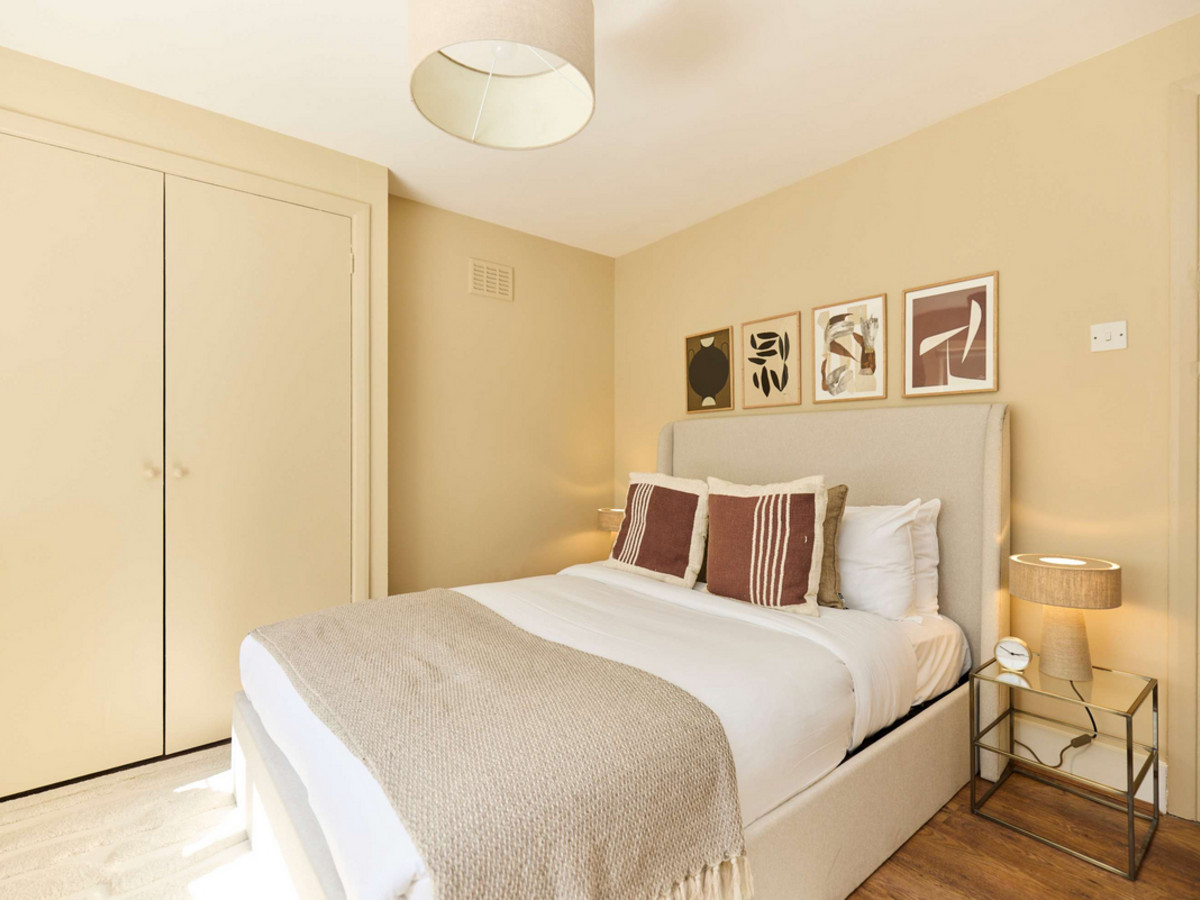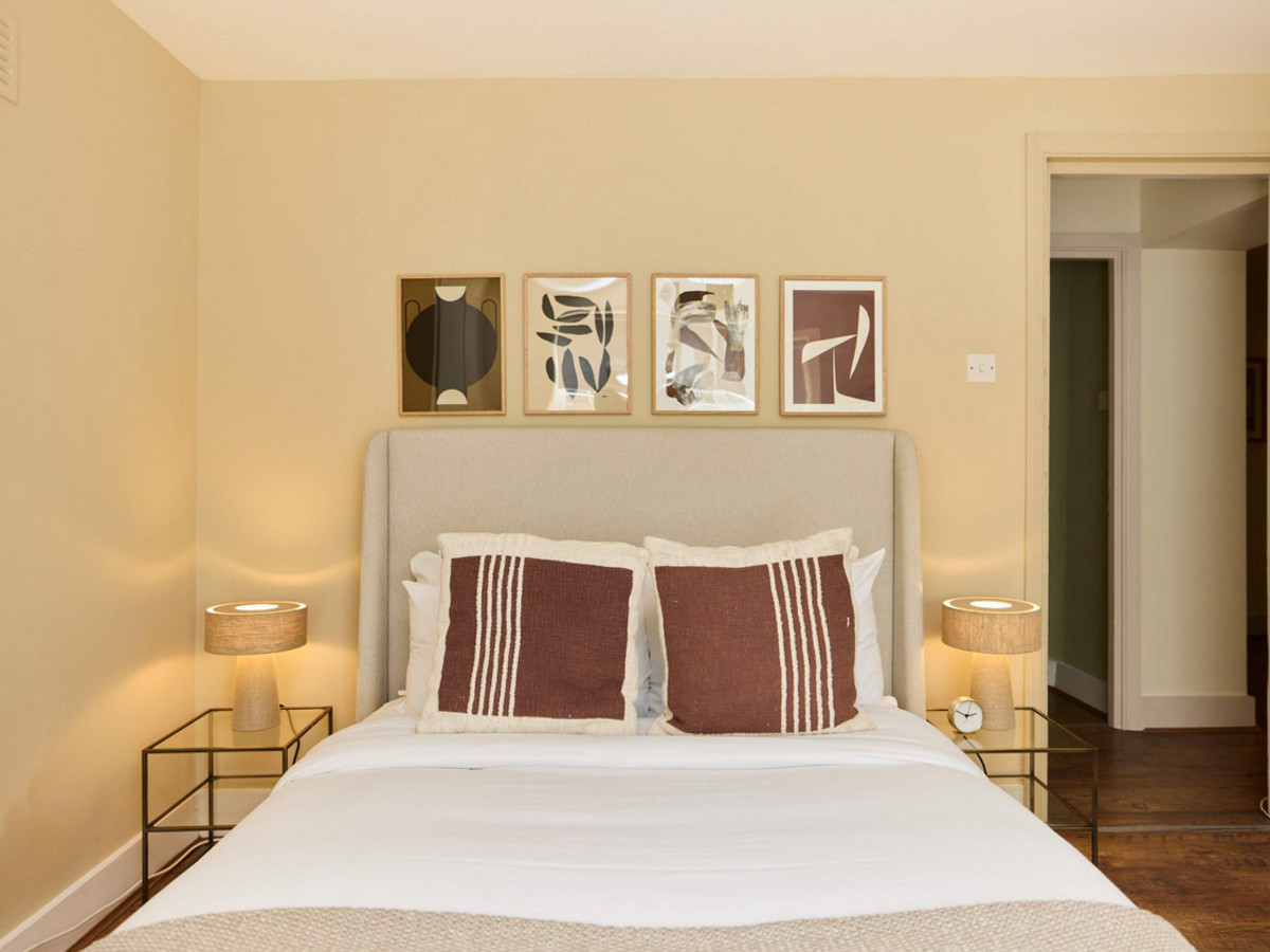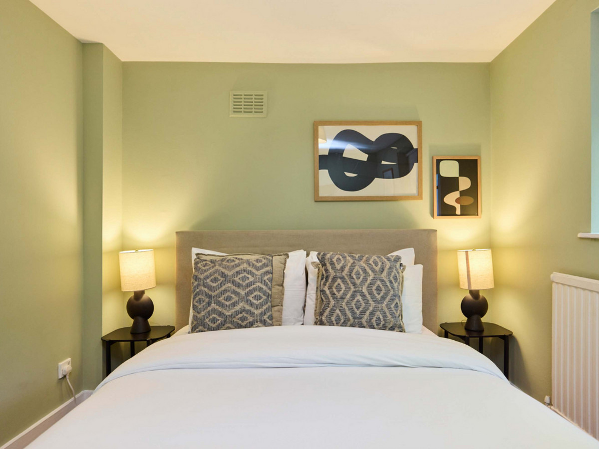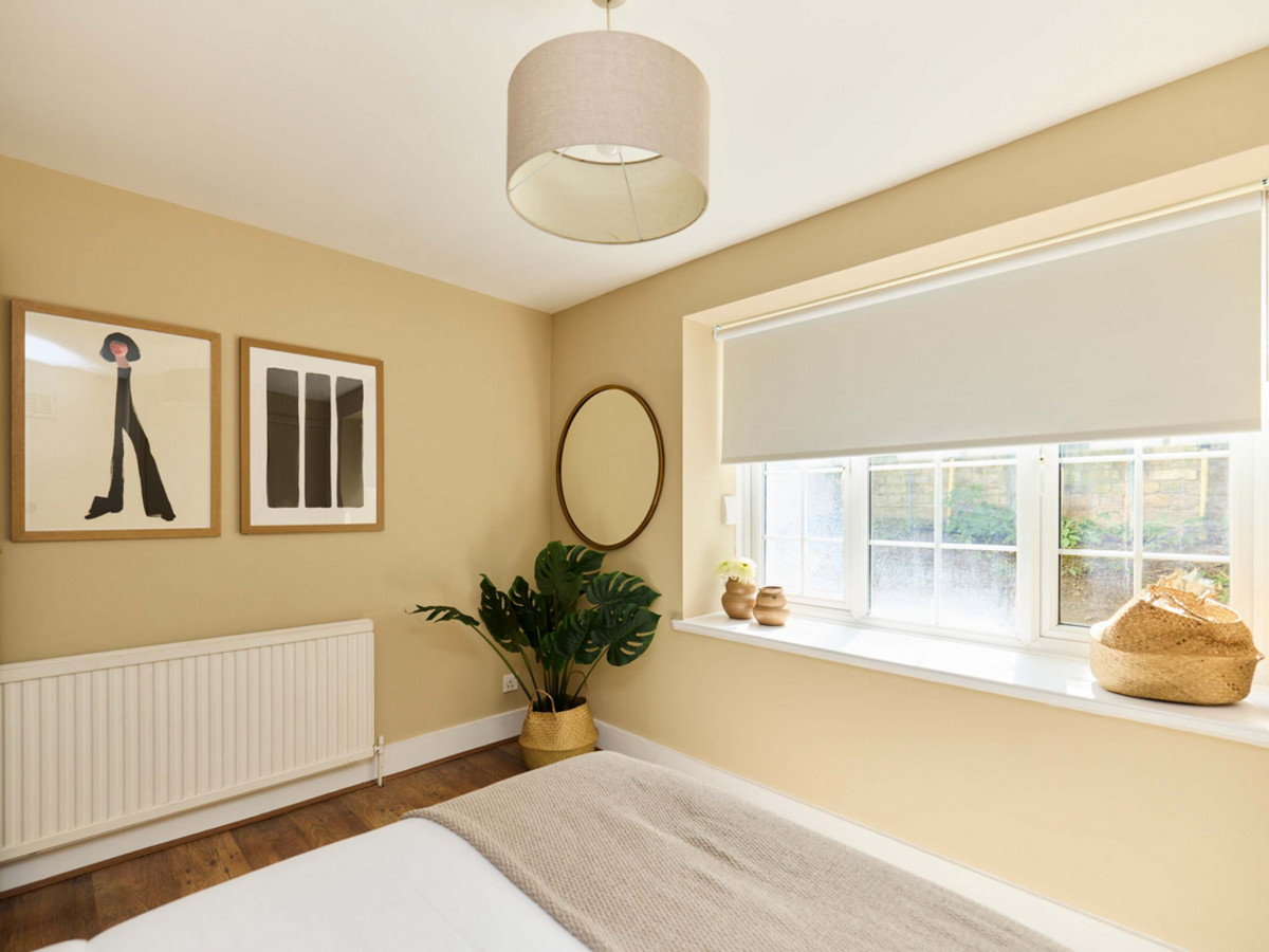 • Bedroom 2: A double room with window views to the garden and minimal furnishings.
