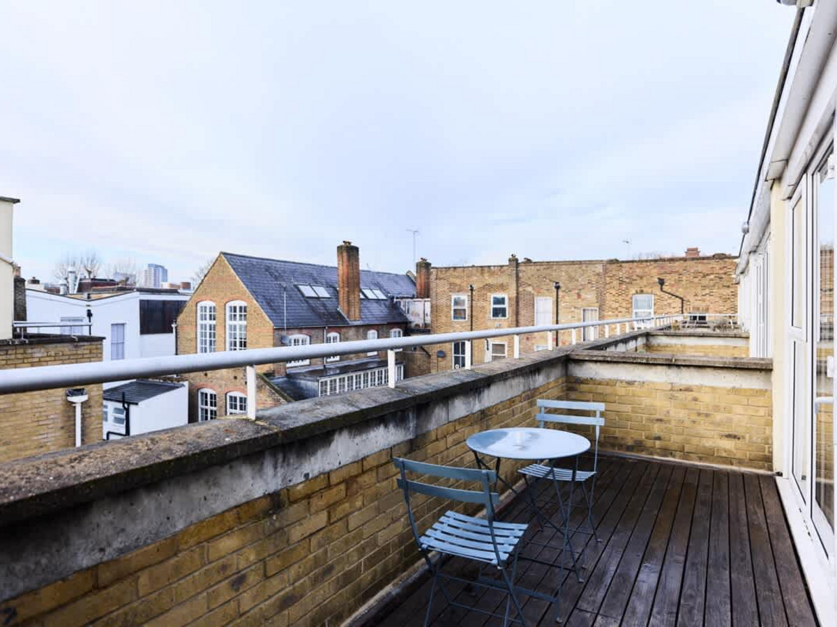 The home features four stylish bedrooms, sharing two modern bathrooms. The bedroom on the third floor has access to a private balcony.