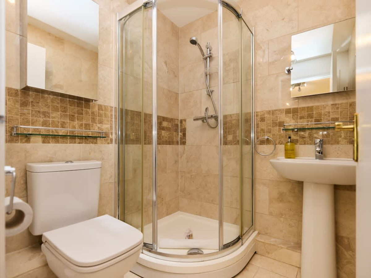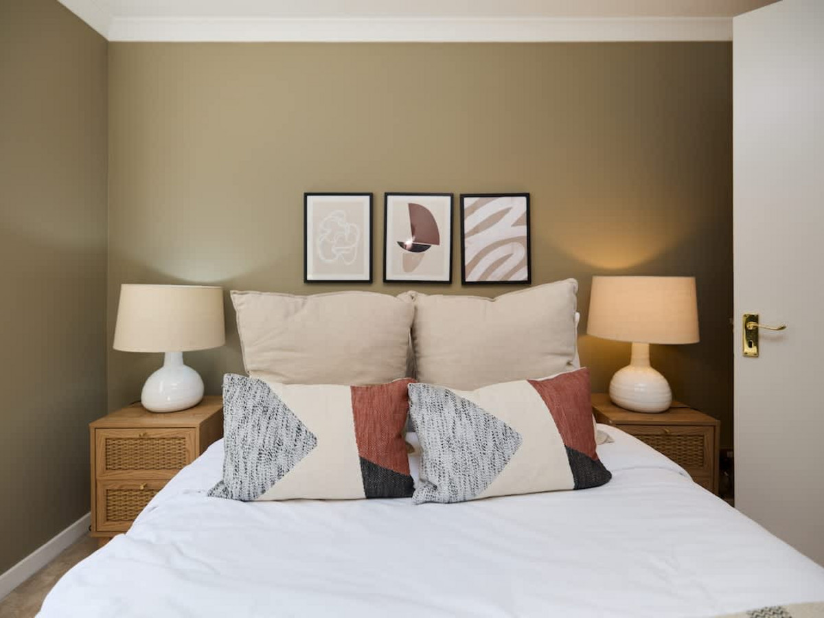 A spacious main bedroom with a king-size bed, bedside tables, chest of drawers, and wardrobe. This room includes an en-suite with shower, toilet, and basin.