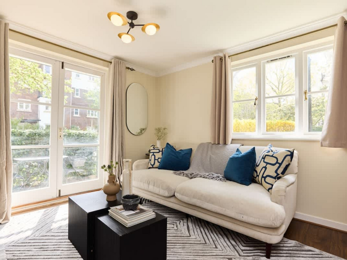 The flat is located in a quiet, residential part of Fulham known for its green spaces and village-like atmosphere. Normand Park and the popular Lillie Road Recreation Ground are both within walking distance, offering outdoor space for a stroll or a relaxed afternoon.