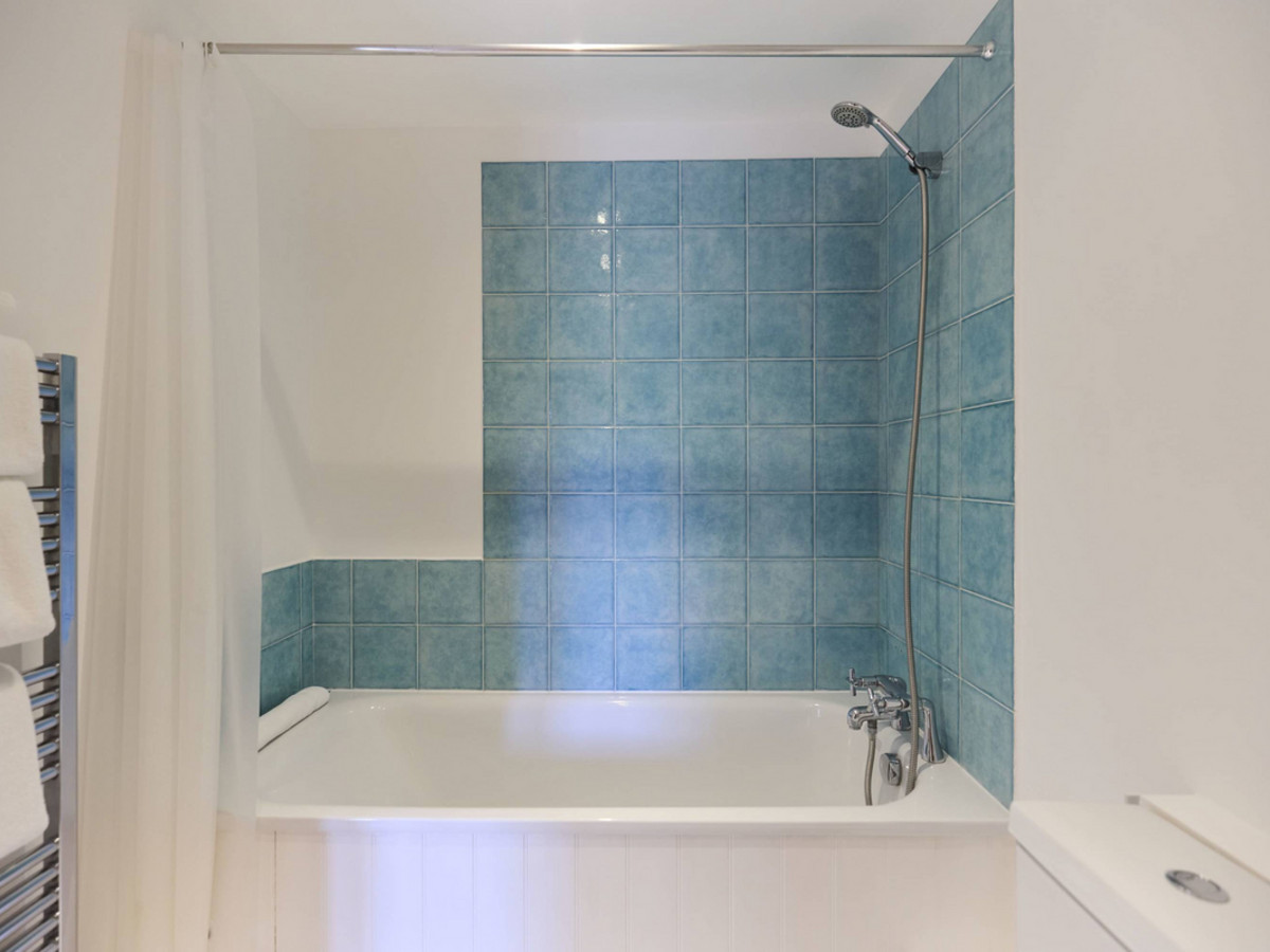 • Bedroom 2: Double bed with access to a second full bathroom (bathtub with overhead shower)