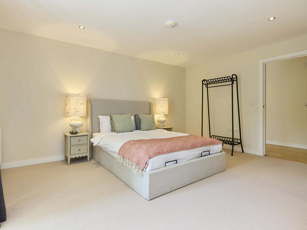 • Bedroom 1: King bed with built-in wardrobes and en-suite shower room