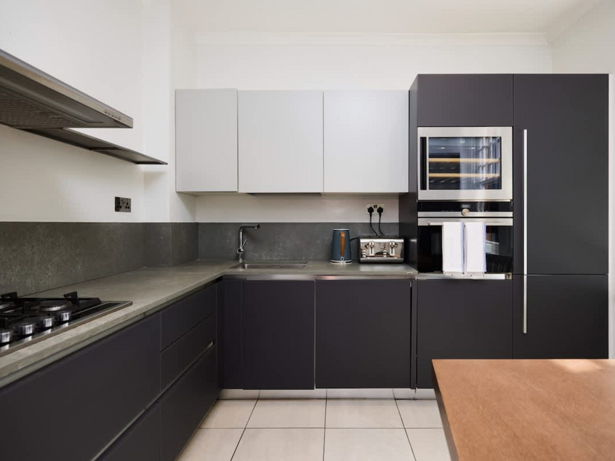 • Well-equipped kitchen with modern appliances, sleek cabinetry, and ample counter space