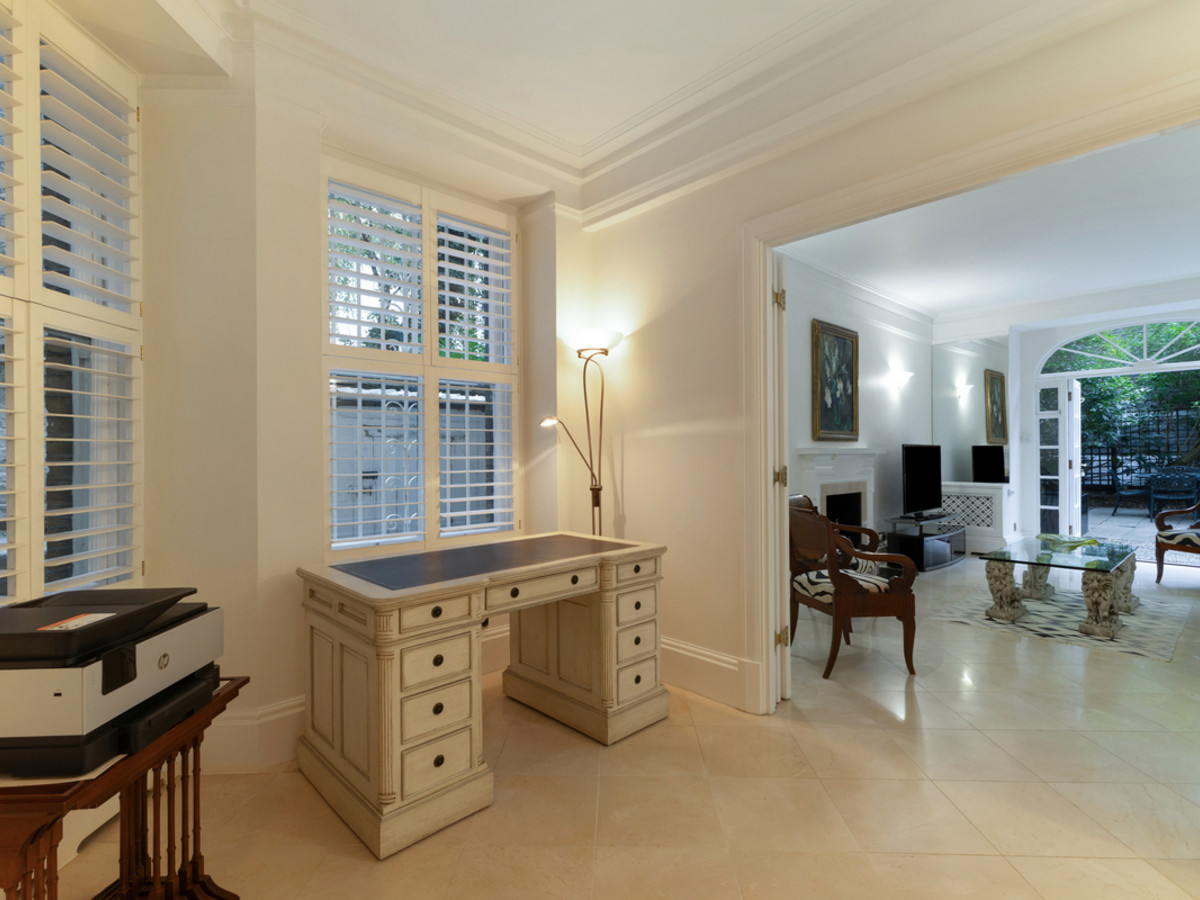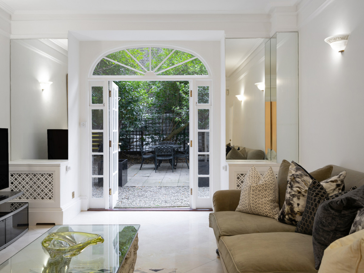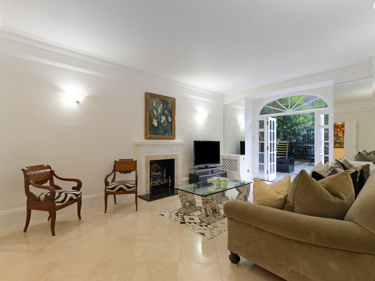 To the rear of the property is a second kitchen, perfect as a family or catering kitchen, and an additional large reception room with French doors opening directly onto the beautifully maintained private communal gardens.