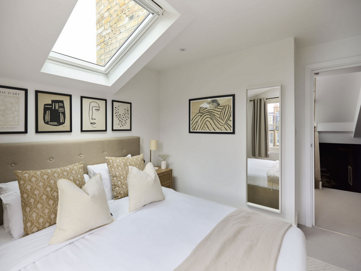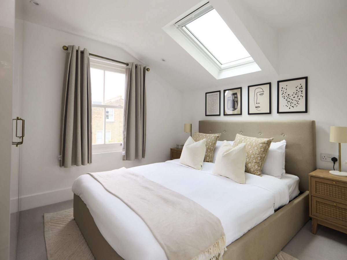 • Spacious king-size bedroom with skylight, built-in wardrobes and soft neutral decor