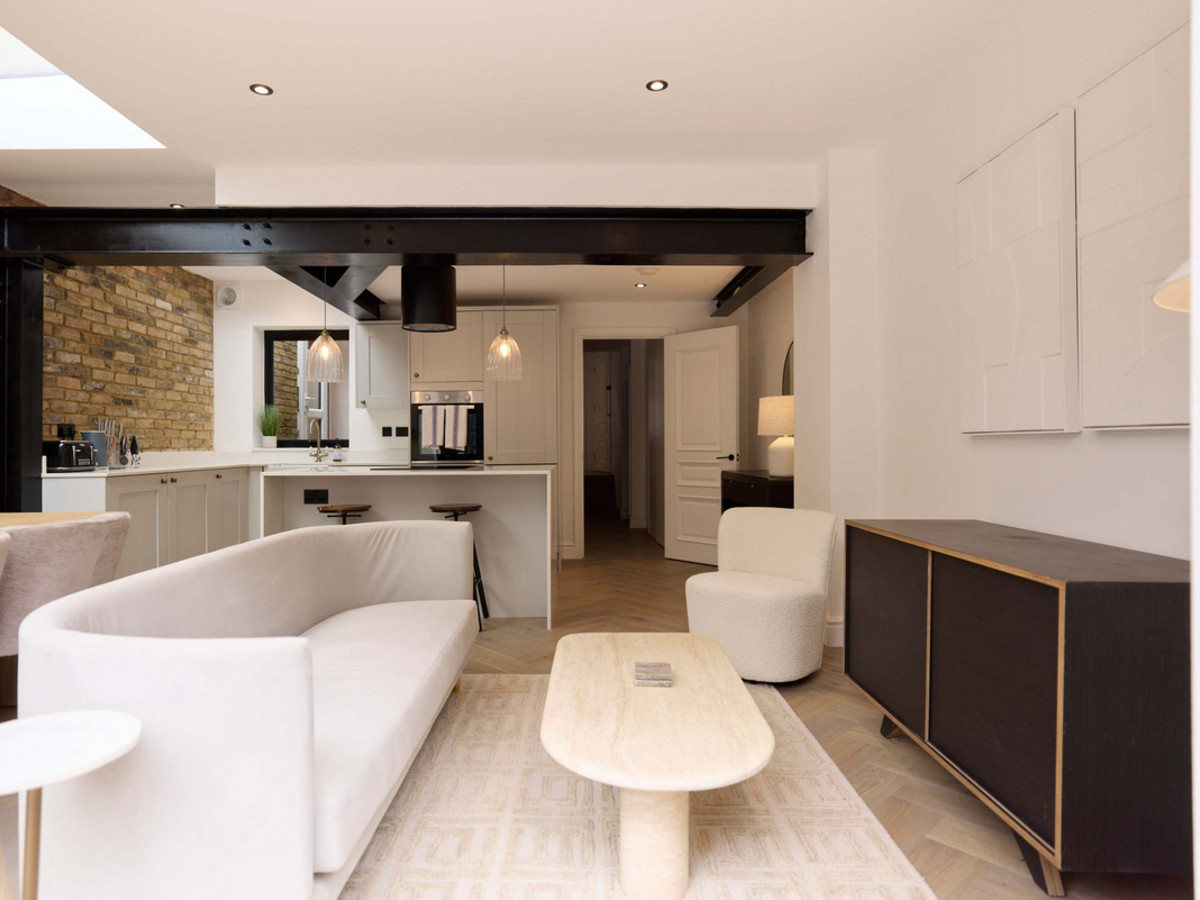 A bright and characterful two-bedroom apartment with two bathrooms, open-plan living, and a private outdoor space—tucked away in Battersea, close to Clapham Junction and Northcote Road.